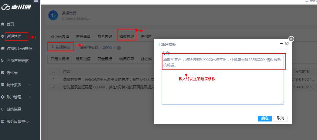 4、创建模板:使用通过审核的模板可以实现秒发。如果发送内容和任何已存在的模板没有匹配,将会走人工审核的流程,降低发送速度。创建模板路径:能力管理——触发短信——模板--创建模板